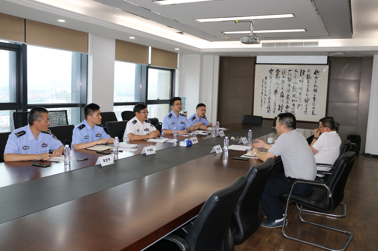 之后,余姚分会会长徐敏对建立律协与公安机关长效沟通平台与施队长一行进行了深入的交流,双方就进一步推动双方法律职业共同体建设达成了共识。