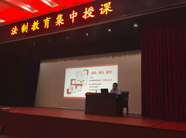 2017年6月21日,钱荣麓副主任应邀前往牟山为海军驻姚某部官兵进行普法讲课。此次授课内容主要涉及刑事犯罪一块,钱律师分别从枪支、弹药类型犯罪;侵犯财产类型犯罪;违背妇女意志类型犯罪;军人违反职责类型犯罪;毒品类型犯罪;赌博、开设赌场罪;危险驾驶罪七个大点出发,为官兵带来了一场普法盛宴。现场气氛热烈,获得官兵们一致好评和点赞。
