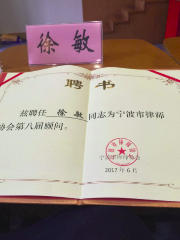 同时,我所徐敏主任原律协副会长任期届满被荣聘为宁波市律师协会顾问!