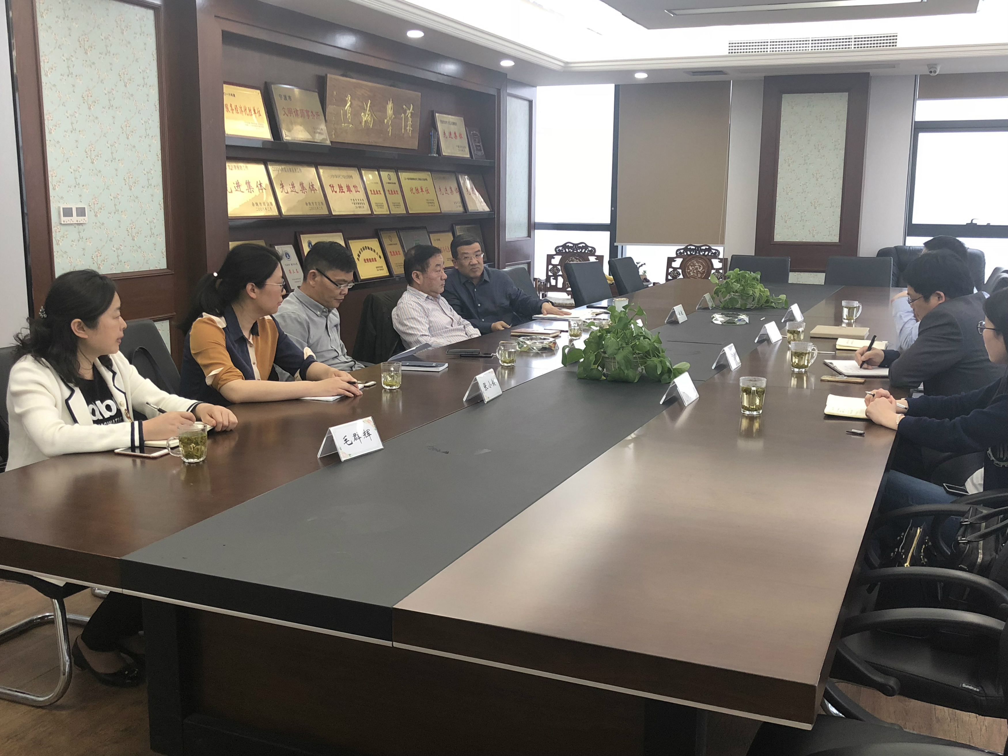 2018年4月11日下午,象山县司法局贺挺局长一行四人莅临我所参观考察。余姚市司法局局长顾天祥、党组成员倪志丹、法管科张小艇、毛群辉陪同来访。我所徐敏主任对来宾表示热烈欢迎。